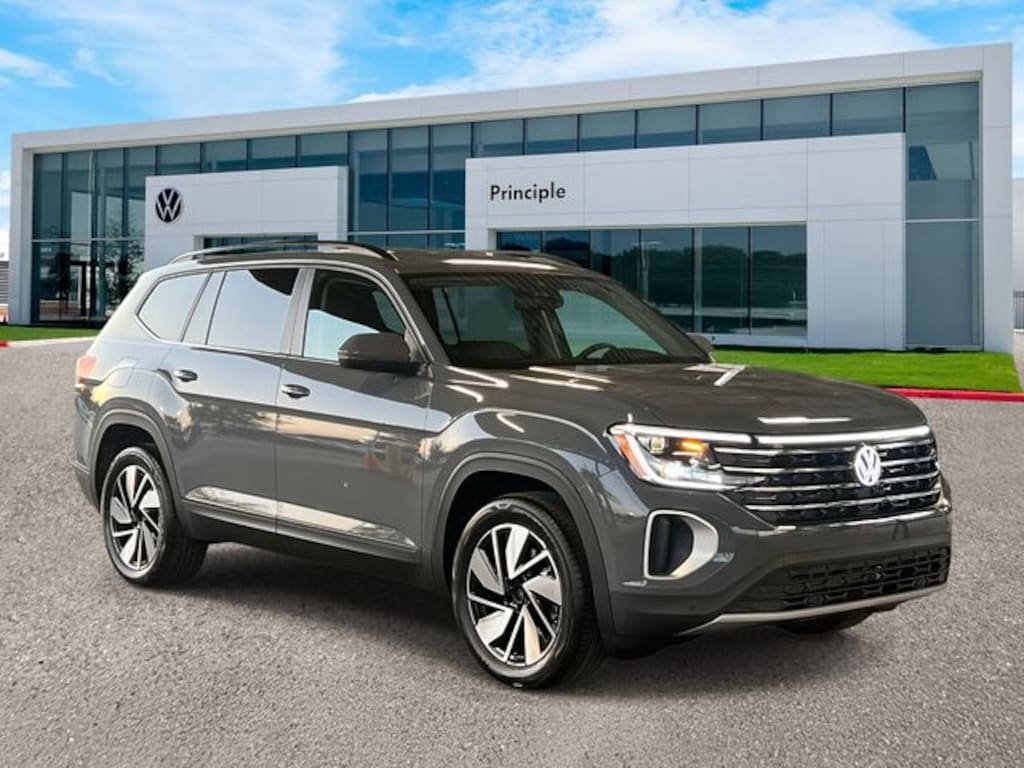 Atlas 2.0T SE w/Technology, 4D Sport Utility, 2.0L TSI, 8-Speed Automatic with Tiptronic, FWD, Pure Gray, 2nd-Row Dual Captain's Chairs, 3rd row seats: split-bench, 4-Wheel Disc Brakes, 6 Speakers, ABS brakes, Auto High-beam Headlights, Auto-dimming Rear-View mirror, Automatic temperature control, Chrome Bumperdillo Rear Bumper Protection Plate, Compass, Delay-off headlights, Electronic Stability Control, Emergency communication system, Exterior Parking Camera Rear, Four wheel independent suspension, Four-wheel Independent Suspension, Front dual zone A/C, Front fog lights, Fully automatic headlights, Heated & Actively Ventilated Front Bucket Seats, Heated steering wheel, Heavy Duty Trunk Liner w/VW CarGo Blocks, Illuminated entry, Outside temperature display, Power driver seat, Power Liftgate, Rain sensing wipers, Rear air conditioning, Remote keyless entry, Rubber Mats Kit (2-row), Speed-sensing steering, Steering wheel mounted audio controls, Telescoping steering wheel, Tilt steering wheel, Traction control, Variably intermittent wipers, Volkswagen Logo Puddle Lights, VW Care, Wheels: 20" 2-Tone Machined Alloy.